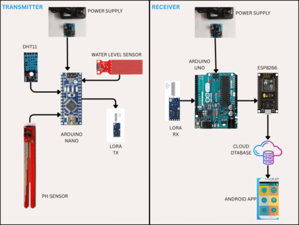 Ā Ā Ā Ā Ā Ā Ā Ā Ā Ā In order to control and monitoring system is designed and implemented using IoT concept. The system consists of which includes all sensors, PCB, MCU with communication hardware, and low-level protocols. Arduino, Esp 32 cam, Node MCU, different sensors used in this framework with their controllers, actuators, etc. which is the control element in the system which gets the current value .In the auto-controlling mode, the system will behave as a feedback control scheme where the user will be requested to specify the desired pH value. If the value of the pH is changed, due to an external disturbance,pumps will inject more of the acidic or alkaline solution as needed. The quantity added will be based on the readings of the sensor to fix the value Besides, if the user selects the manual control status, he should set the amounts of acidic and alkaline solutions in each pumping process. Accordingly, if the user chooses the acidic solution button, the pump is going to pump a specific amount of the acidic solution for one time only. The ESP32cam also collects other data for monitoring and bird/animal scaring.