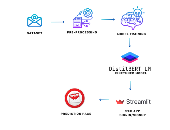 Spam emails continue to pose significant challenges in the digital landscape, impacting individuals and organizations alike. Traditional methods for spam detection often fail to account for the complex and evolving nature of spam content. This research proposes a framework that uses the DistilBERT model—a lightweight and efficient version of BERT—for spam email classification. By utilizing DistilBERT’s ability to understand the context and semantics of language while reducing computational overhead, the system achieves high accuracy in identifying spam and legitimate emails. The proposed model demonstrates improved performance and efficiency over traditional techniques, offering a robust, scalable, and resource-friendly solution for spam detection.