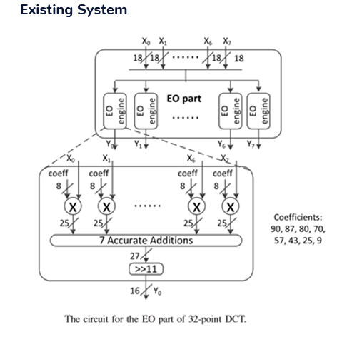 In the existing system, it is being reduced the computation cost of DCT by truncating a couple of least significant bits (LSB), most significant bits (MSB), and zero columns. First, considering that the contribution of LSBs is weakened because of the final right shift operation, we have eliminated the computation process for some LSBs. For the addition of the remaining LSBs, a parallel carry propagation adder is proposed to reduce the calculation latency. Second, owing to the phenomenon that high-frequency components are quite small in natural scenes, a couple of MSBs are selectively truncated according to their positions. In the proposed system, design of an advanced model of parallel DCT with iterative looping structure is used.