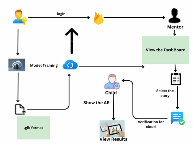 In the proposed system, augmented reality (AR) will be integrated with the storytelling process, transforming traditional books into interactive and immersive experiences. The system will be designed to allow children to interact with the book using AR, adding layers of visual and auditory stimuli to engage children more deeply in the content. The novelty and interactivity of AR could make the book more exciting for children to return to again and again, unlike static books that children may quickly lose interest in. AR-based books could offer different experiences upon multiple readings, increasing their replay value.